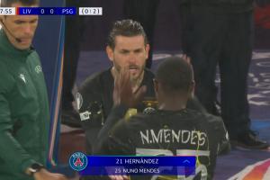体育资讯04月15日讯 利物浦vs巴黎第38分钟,门德斯伤退,卢卡斯·埃尔南德斯登场!